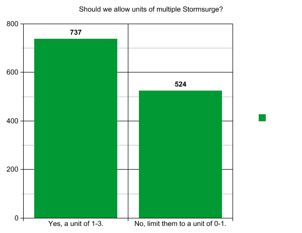 The new Tau Gargantuan Creature, the Stormsurge, can be taken in units of 1-3. Currently in the ITC, we only allow a single Lord of War to be taken. Should we make an exception to the rule for the Tau Stormsurge and allow it to be fielded as a unit?