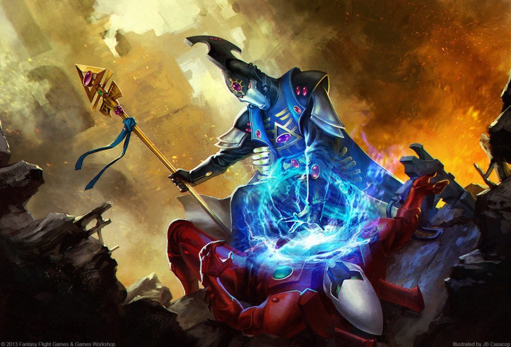 - Staff of Ulthamar (Good): Yet ANOTHER AP3 close combat option that is ALSO a Force Weapon. This guy has some seriously awesome options. Additionally, Eldrad’s disco stick has a really cool little ability that can really help you get off that extra power here and there. The Spiritlink ability allows Eldrad to re-fill his Warp Charge pool with an extra dice, if he succeeds on casting a psychic power, on the roll of a 5 or a 6. With a mastery level of 4, you will already be hard pressed to cast every power you can per-turn, but this power can definitely help you get there.