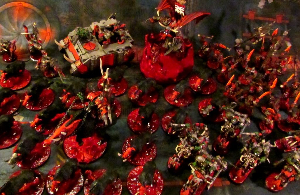The SlaughterCult benefit, I find isn’t as useful as it seems at a glance. I’m not usually taking much more than the minimum there, and so that’s not a whole lot of stuff to benefit from that extra BT choice. If I’m running a Blood Host, I generally take a full Unit of Spawn as my JuggerLord’s bodyguard instead of Flesh Hounds, since regularly getting FNP edges them over a little on the durability.