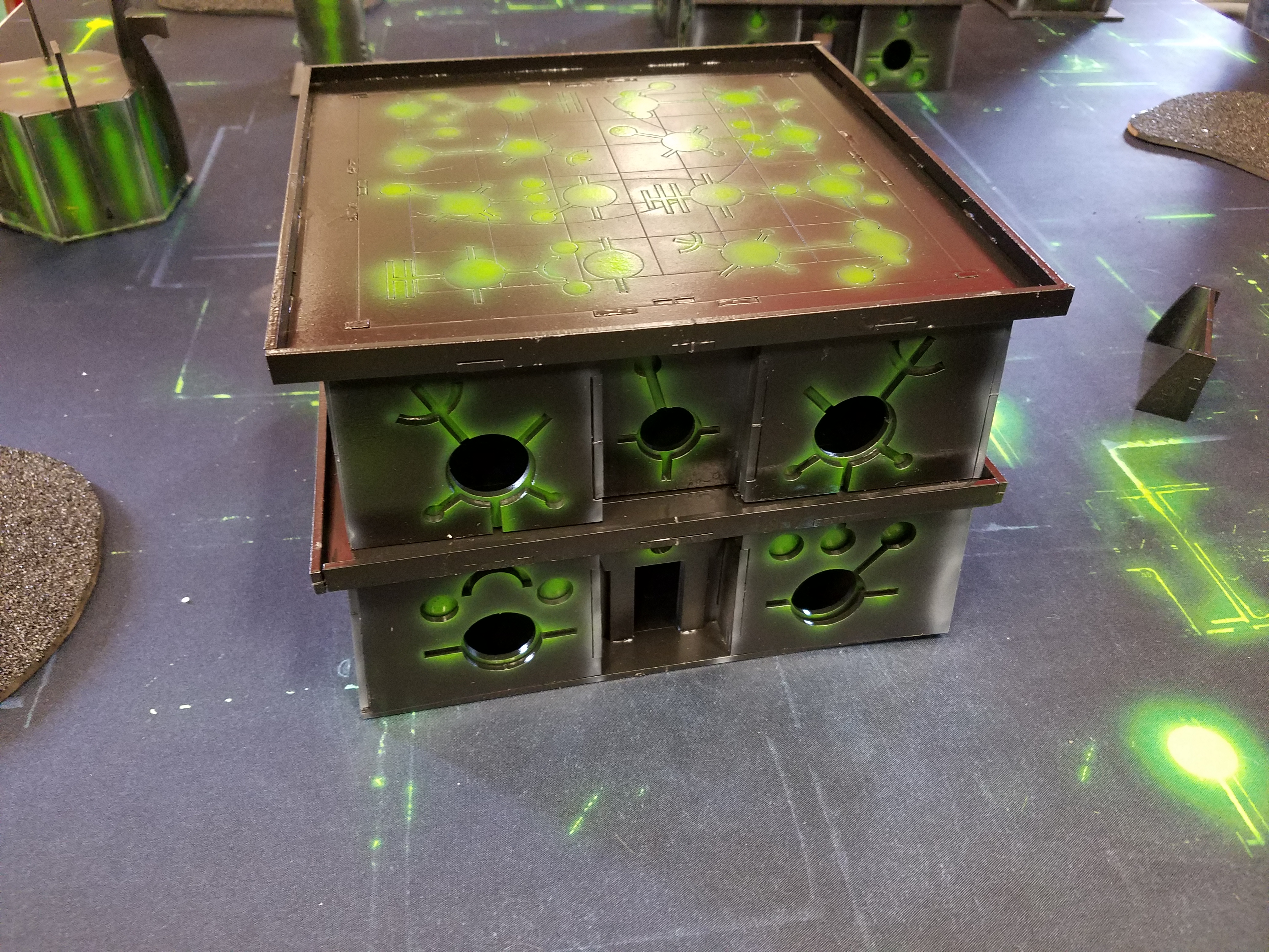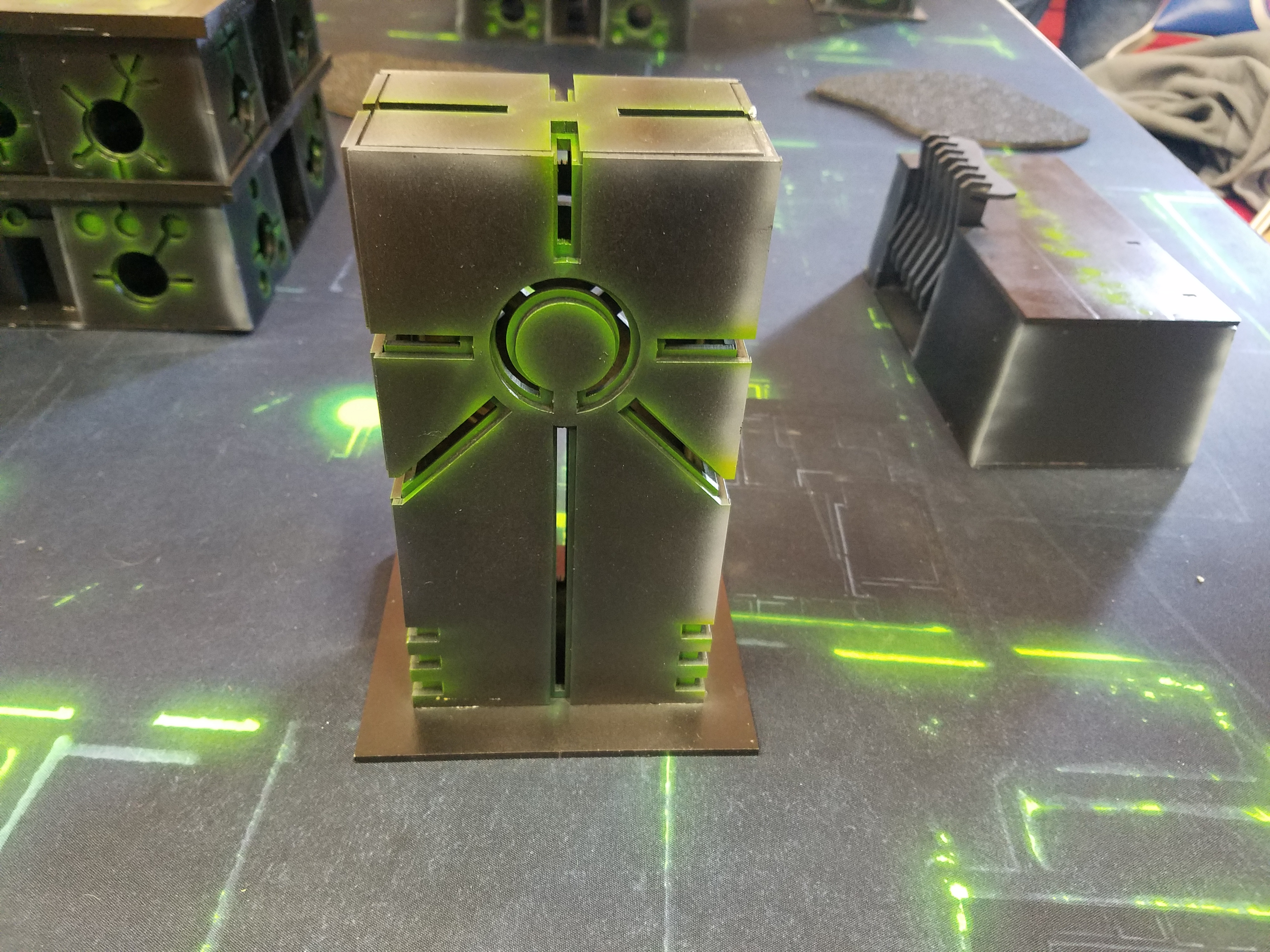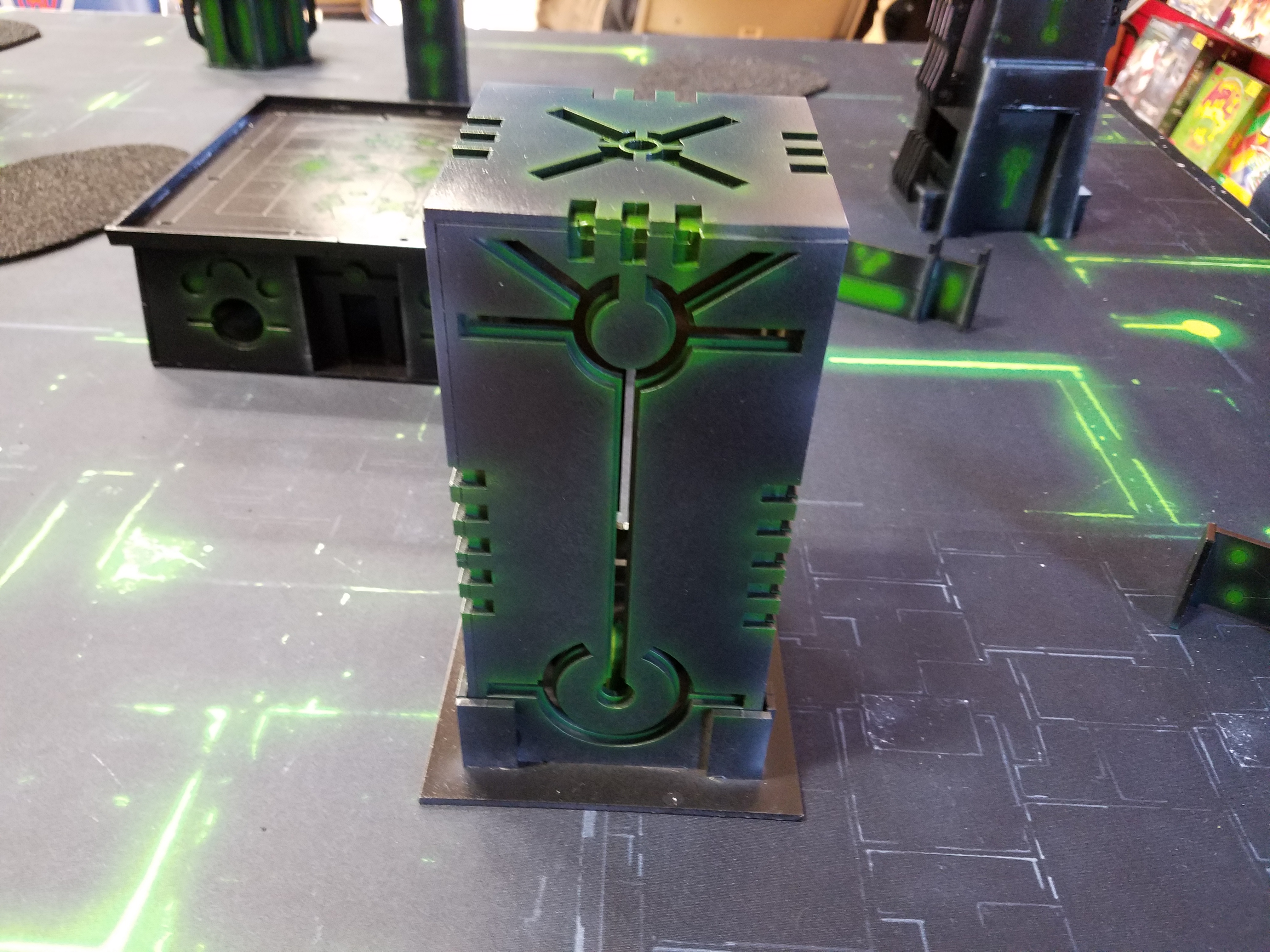 These were very cleverly designed as they had two layers on each side that went together very easily and have a nice large presence on the battlefield. There is also room in the bottom to insert lights – more on that later. They look cool, offer some nice line of sight blocking terrain, and break up the visual of the rest of the more city like terrain. These were my favorite pieces of the set.