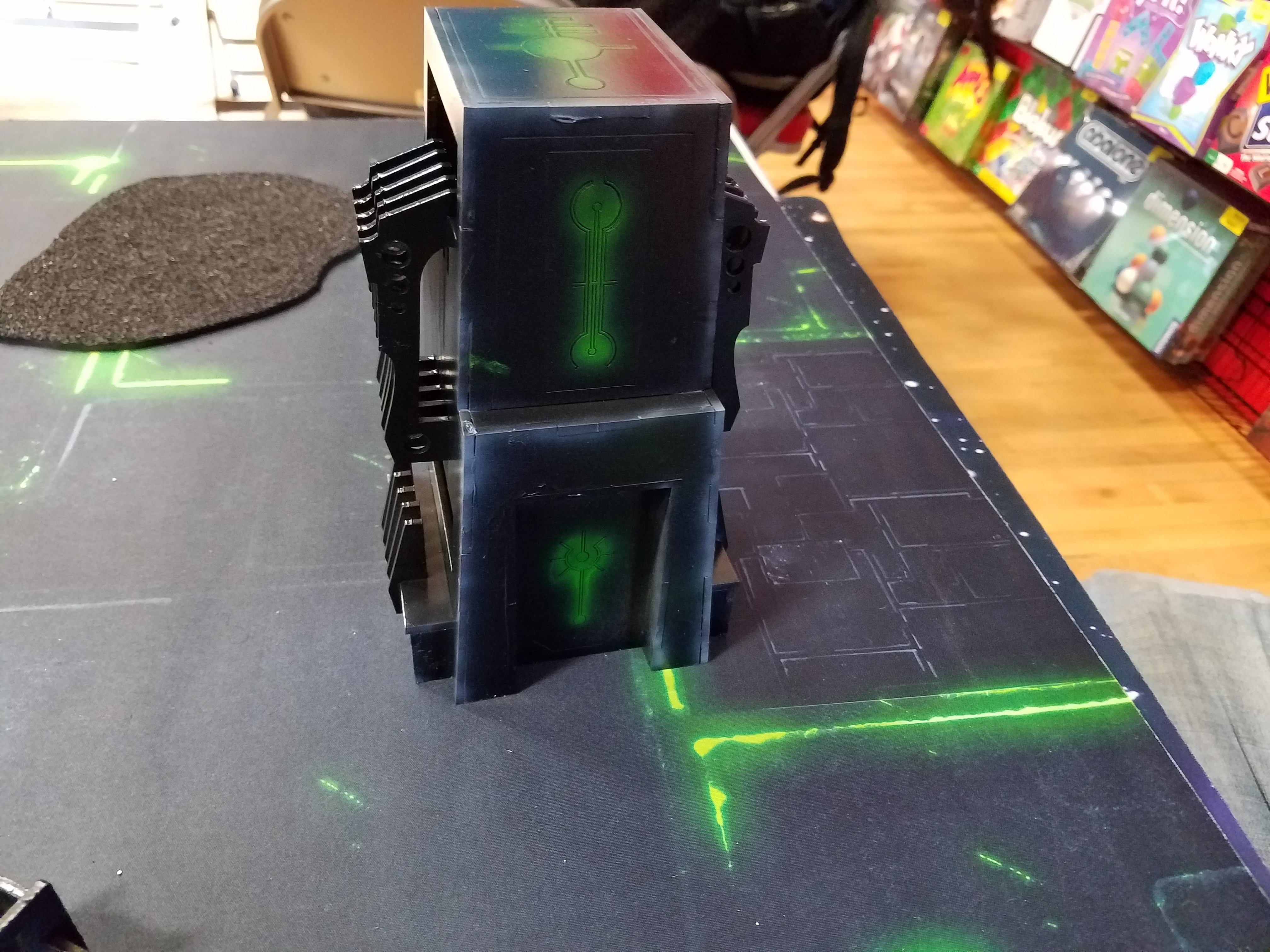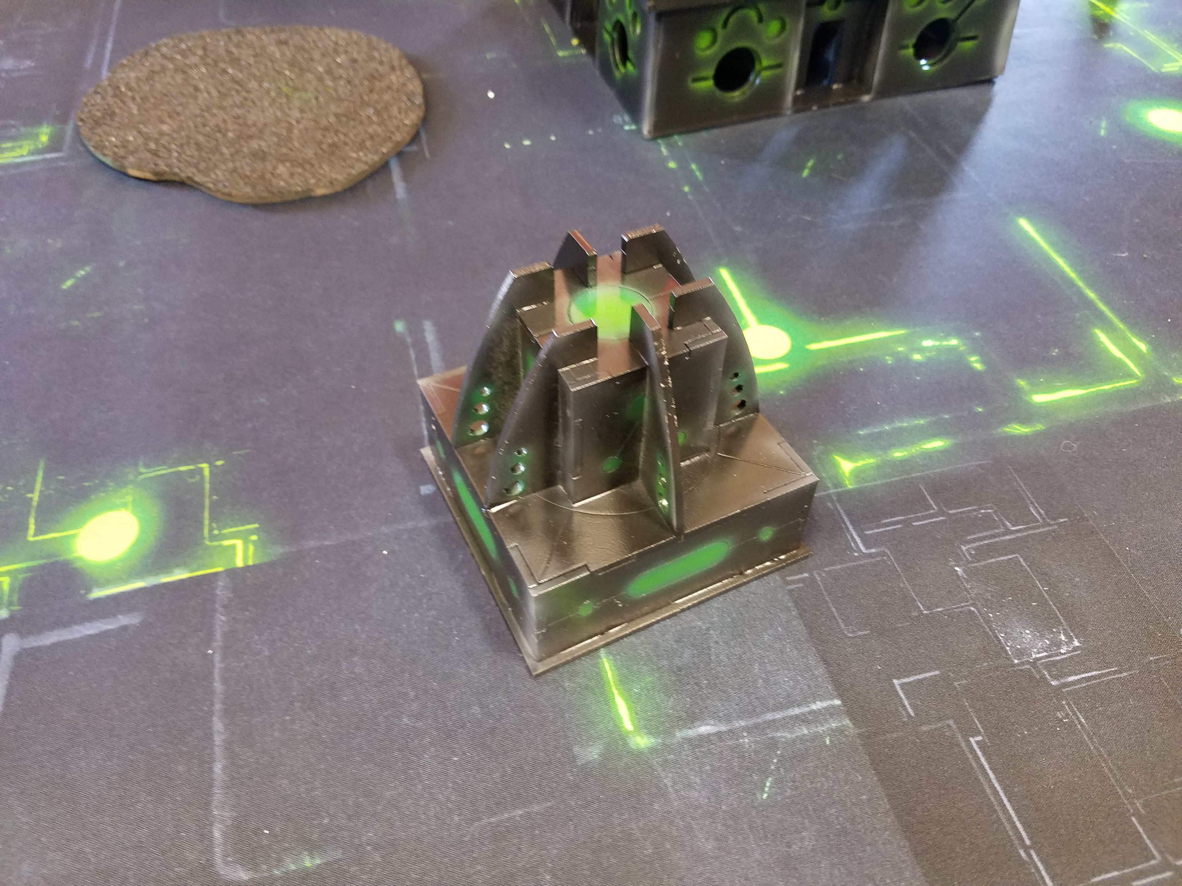 Overall I liked the design of the set. It really fits with my other…robots…that I play with and gives you the feeling that you are on a fully exposed robot tomb. Having all the terrain painted on the mat gives it a very nice look and is something that people want to play on. I really liked the dual layer design with a larger hole/pattern over a smaller hole/pattern to give depth and texture. It was quite creative.