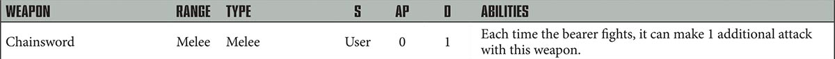 Even the humble chainsword gets a boost. No longer just a standard combat weapon, the iconic combat weapon wielded by the Adeptus Astartes and many other forces, now gives its bearer more attacks in combat. Perfect for grinding through hordes of low armoured troops, the chainsword now functions on the battlefield how it always has in your head. This change also helps differentiate dedicated combat troops from those just wielding improvised or side-arm weapons.