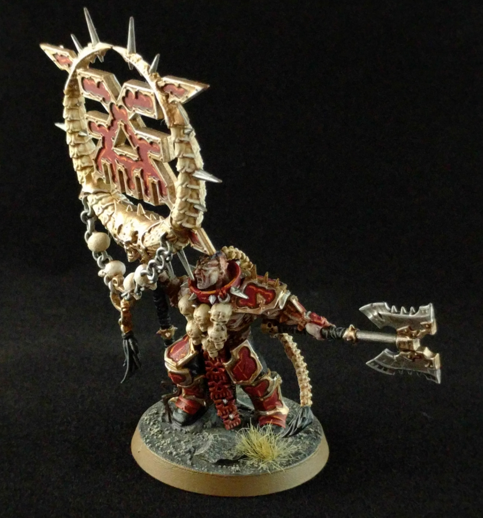 Bloodsecrators are the centerpiece of any Bloodbound army. They stand amidst the horde of blood-thirsty warriors carrying a profane artifact of Khornate power. When thrust into the earth, these artifacts tear a rift in the veil between the Chaos and Mortal Realm to unleash the incandescent rage of Khorne and send the warriors of the blood god into to a crazed murder lust.