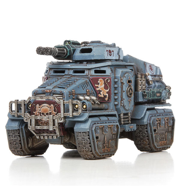 Taurox Prime– with Taurox Gatling gun, 2 hot shot volley guns, and a storm bolter. This is the go to spam for many an armchair general and I can’t blame them, 32 shots at 12”, 30 at 24”, especially with the extreme cheapness of AM units, you’ll probably go second, meaning the opponent will probably be in range without moving. The weakness is of course they have no mitigation for moving and firing penalty, and they are only T6, making them easier to kill than its primary competitor, the twin assault cannon Razorback.