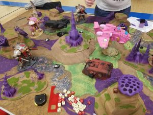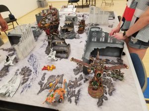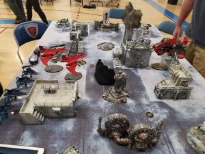 Overall, I felt we met most of our goals for the Boise Cup. I put a ton of work into the tables and was proud of how they looked and worked. With 8th, we saw a ton of issues with how terrain works and tried our best to borrow and create terrain that would work in an 8th environment. We instituted some house rules with windows (no shooting through windows in the bottom floor and you could shoot into windows on the top floor but not completely through a piece of terrain). The goal was to create more LOS terrain which is pivotal in 8th. Without it you will have large spammy lists of long range high damage shots that just tear through other lists. Even though it wasn’t perfect I was pretty happy for our first event. We hope to do even more next year and a lot of people were stepping up to say they would love to lend terrain. I’m thinking a table design award is in order.