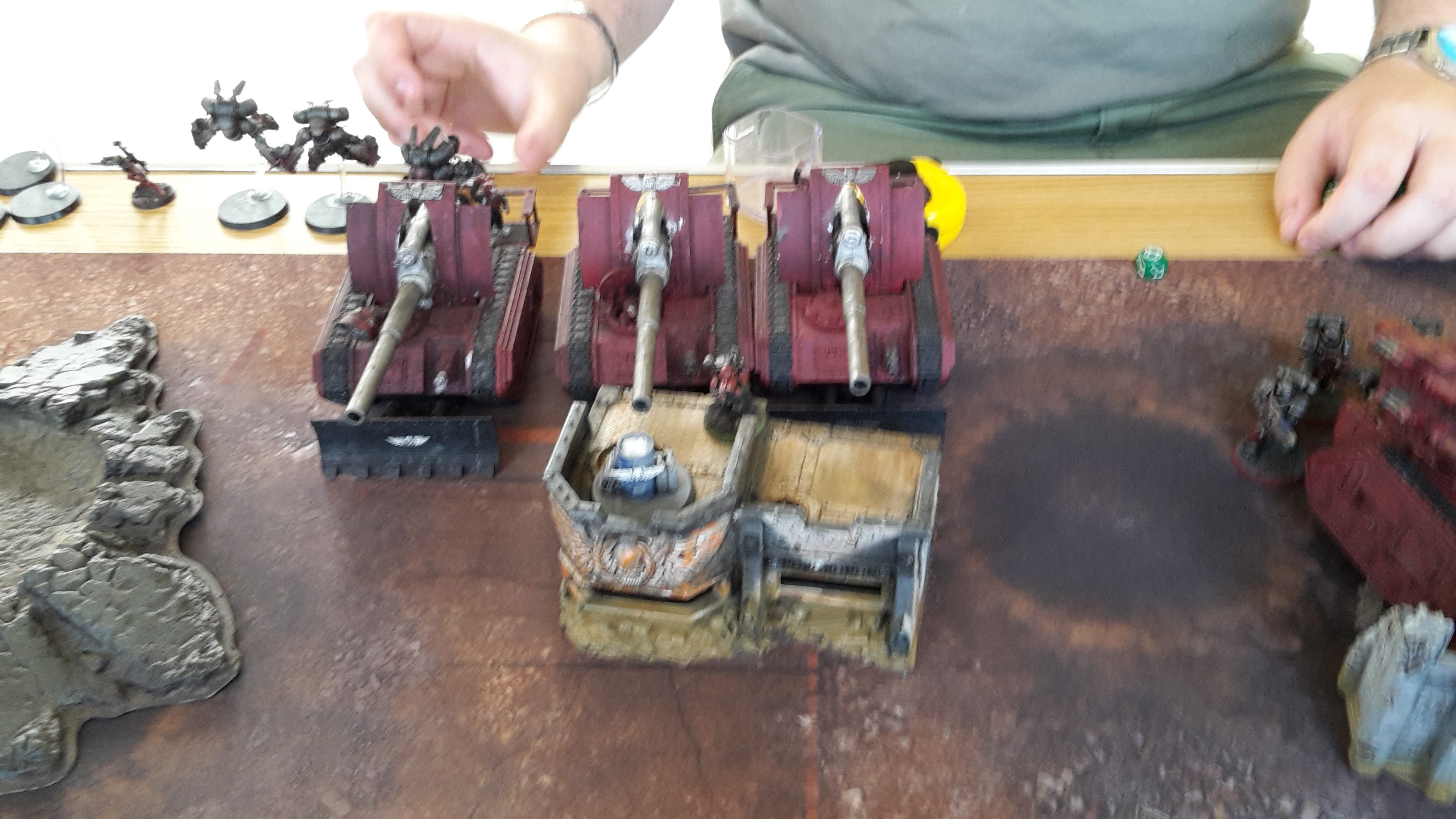 The Primaris battle line readied itself, with no movement occurring on the front line as the artillery tanks prepared to fire.
