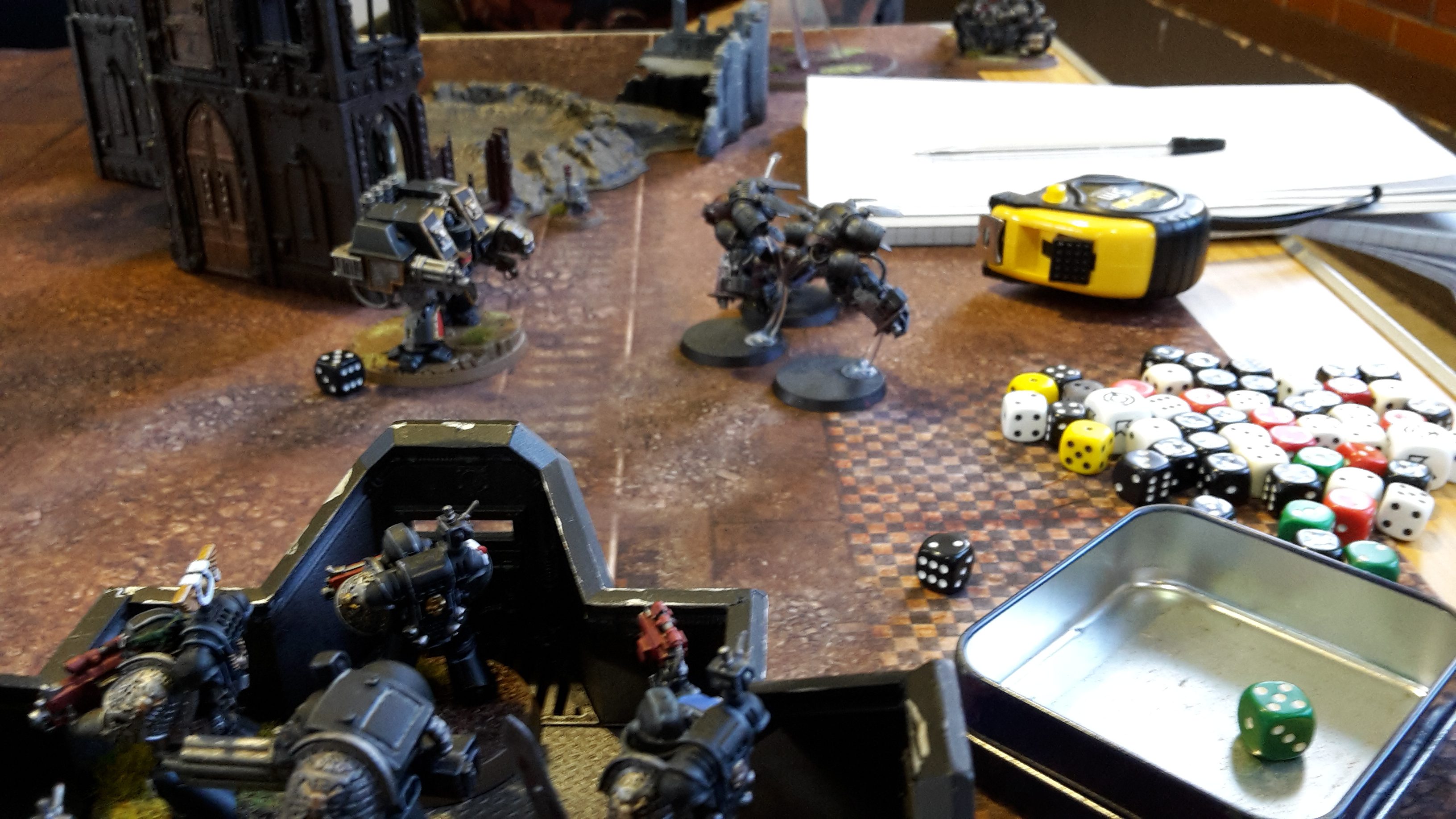 - Command Points are fickle. Pretty much all of my command points were wasted in this game, as I did not succeed in a single re-roll that I used them for. My dice rolling did seem particularly atrocious in this game, as I was simply unable to make a save in ruins or wound anything on a 4+.