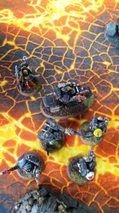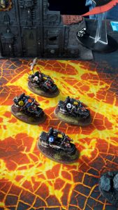 The Second unit of Bikers fired at the Kabalite Warriors, killing two. The surviving warriors passed their morale test and my turn ended.