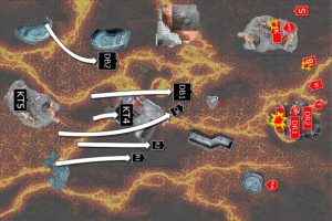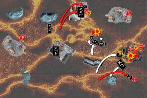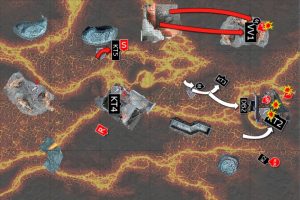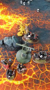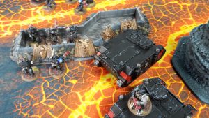 I rolled for the 8 models inside the flyer and rolled three 1’s for the unit. I decided to use a Command Re-roll and passed one of the tests, losing 2 members of the squad as they disembarked. Fortunately, I was able to deploy in range of objective 5 to stop Tess from claiming it this turn.
