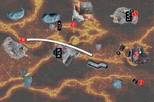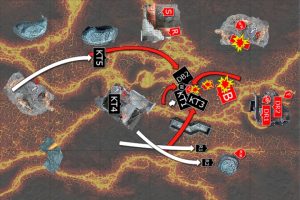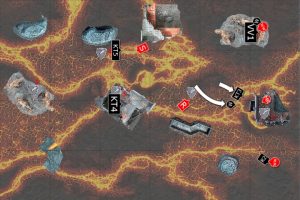 The Wave Serpent launched itself after objective 5, while the Razorwing and Starweaver moved up the Eldar right flank. On each flank, the War Walkers moved up on the Deathwatch forces, supported on the right by the Kabalite Warriors.