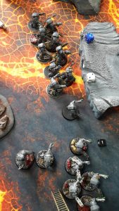 There was little I could do about the rest of the Terminators. Having so many combi-weapons in each squad meant that they were able to eliminate whatever they wanted to during the game. Arriving on turn 1 at short range was brutal. In addition, the re-rolls to hit and to wound from the combination of Logan and Arjac really increased their damage output and stops them from killing themselves with overheating plasma fire.