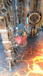 One Wolfguard Terminator Squad fired their Meltaguns at the Kill Team in the centre, easily wiping out the squad. The Terminator squad to the north fired their Plasma Guns at the Kill Team on the gantry, killing the entire squad.