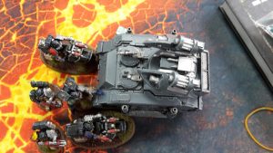 I would have liked to have got first blood, but without the Meltaguns, my army lacks the long range firepower to take out enemy vehicles.