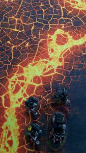 The area around the mining platform distorted, as the Wolfguard Terminators arrived en masse, moving into position north of the Deathwatch lines. The Swiftclaws gunned their engines, surging forward to meet the foe. The Iron Priest began working on the damaged Whirlwind, repairing two of its wounds.