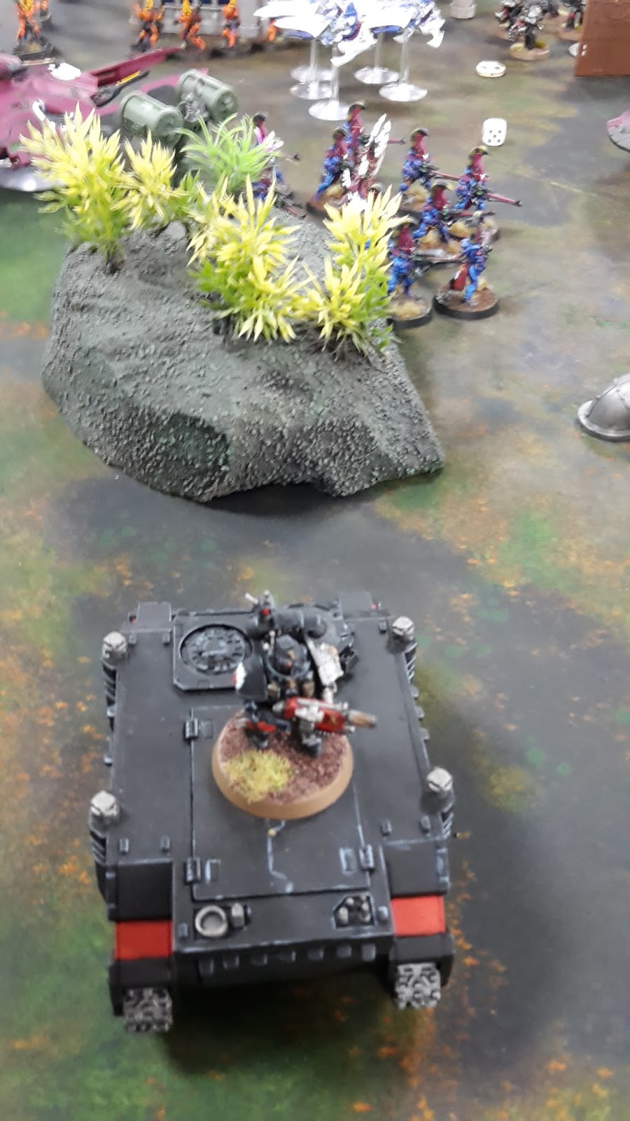 The Autarch moved up on the Rhino, while the Dire Avengers advanced to get into sight of the Terminator.