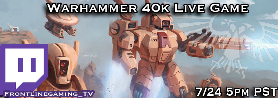 We’ve got a guest for the game tonight, Rich with his Black Templars vs. Frankie and his T’au! Join us at 5pm PST for the fun.