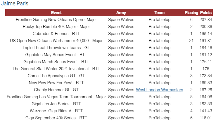 Jaime comes in with his Space Wolves from ProTabletop with him being one of the sole reasons why Space Wolves have seen such a resurgence in the recent meta. If you go up against Jaime, be prepared.