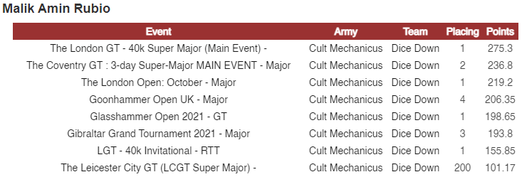 Team Dice Down brings in Malik Rubio, a die hard Admech player that has been placing really well throughout the year. #6 in the overall standings, it’ll be interesting to see how he approaches this major with the new Admech changes.