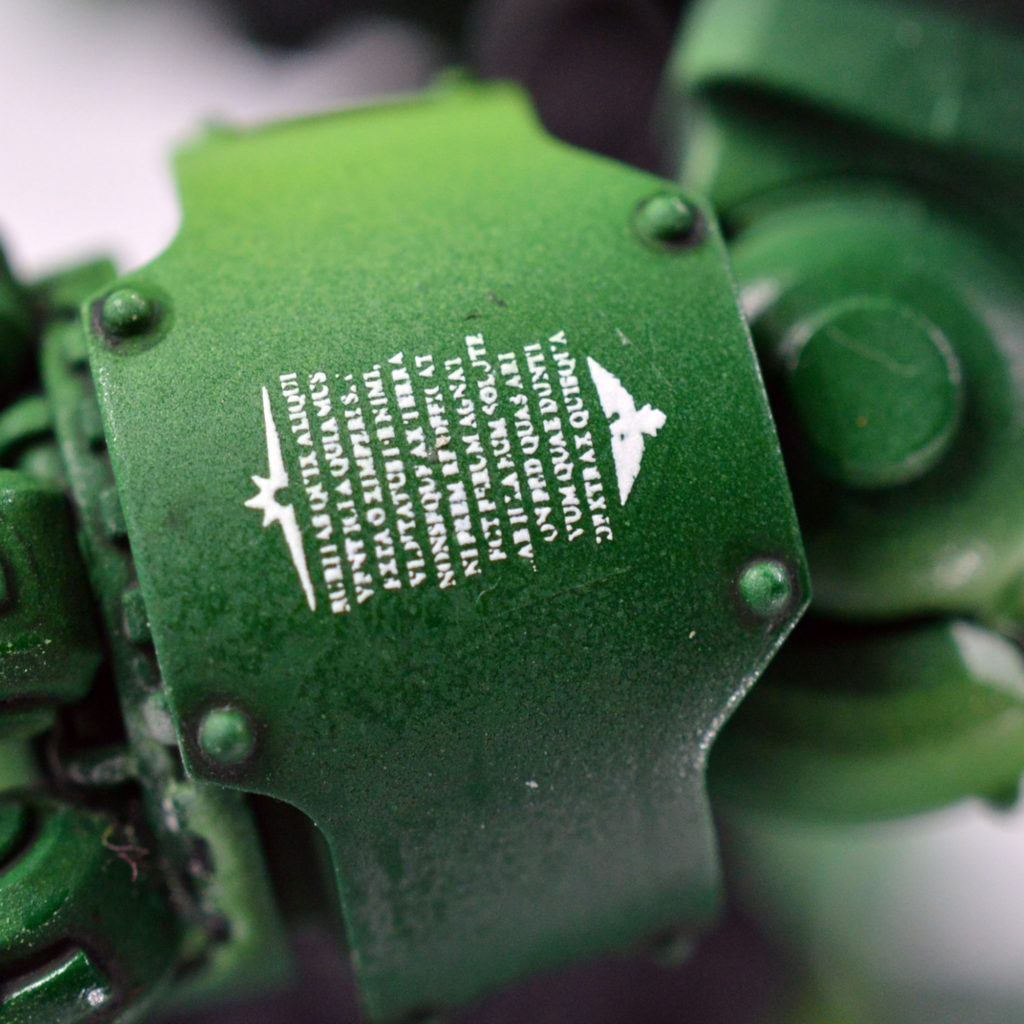 Lastly, to truly integrate the decal into the rest of the paint scheme, it’s advisable to apply a layer of finish. In this case, I used matt varnish because that’s what I used on the rest of the model. If you prefer satin or even gloss, use those. If you don’t have an airbrush, that’s fine. Apply a thin coat over the decal and the panel, armor, etc. that it’s resting on. GW’s Lahmian Medium works similarly as well. This will cut the glossy sheen and make it truly look like the decal is painted directly to the surface. And there you have it, a quick guide to achieving beautiful looking decals. Get out there and give it a whirl for yourself!